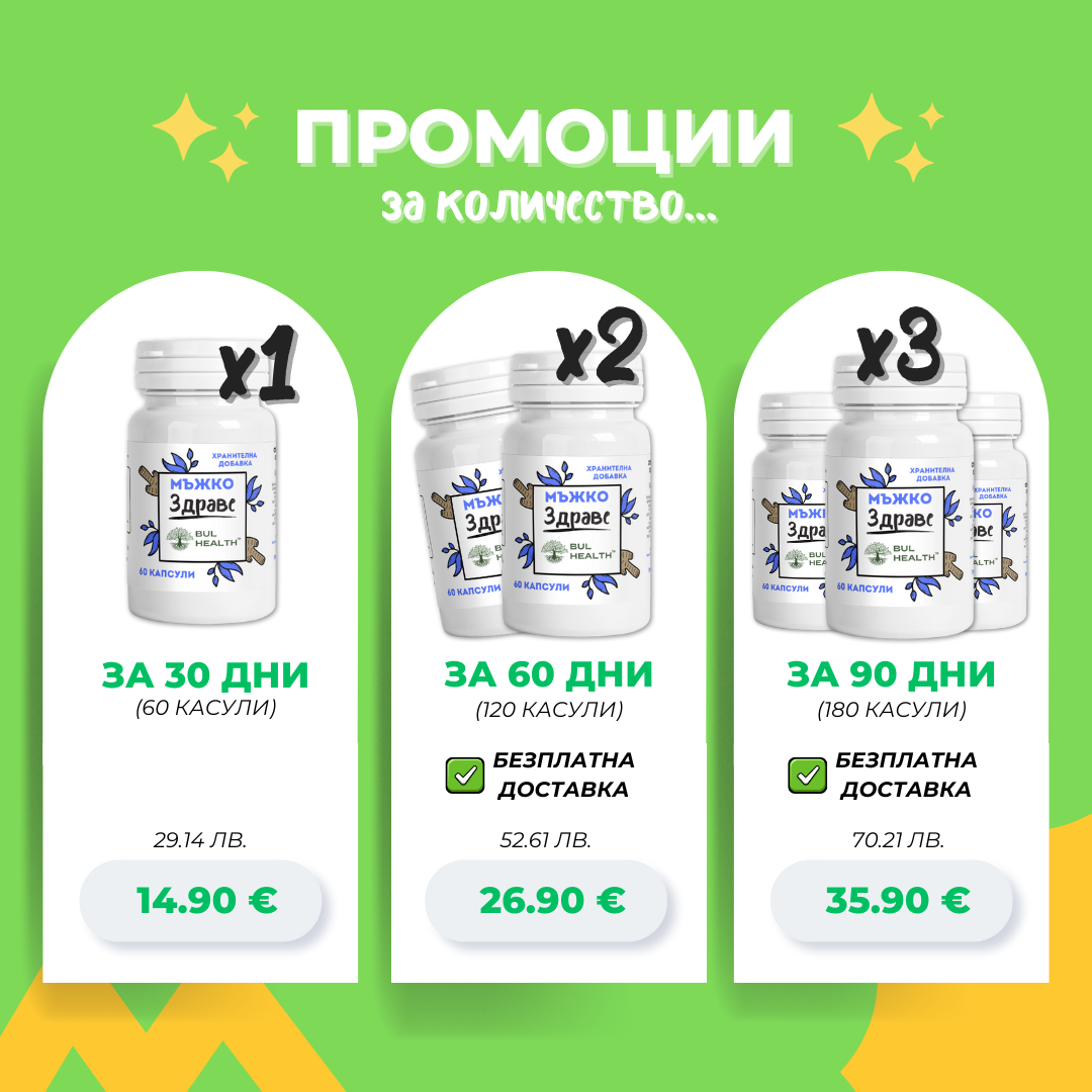 ✅ Предлагаме ти билкови капсули Мъжко Здраве™ за минимум 30-дневен прием, за да сме сигурни, че сме ти свършили работа и сме помогнали!